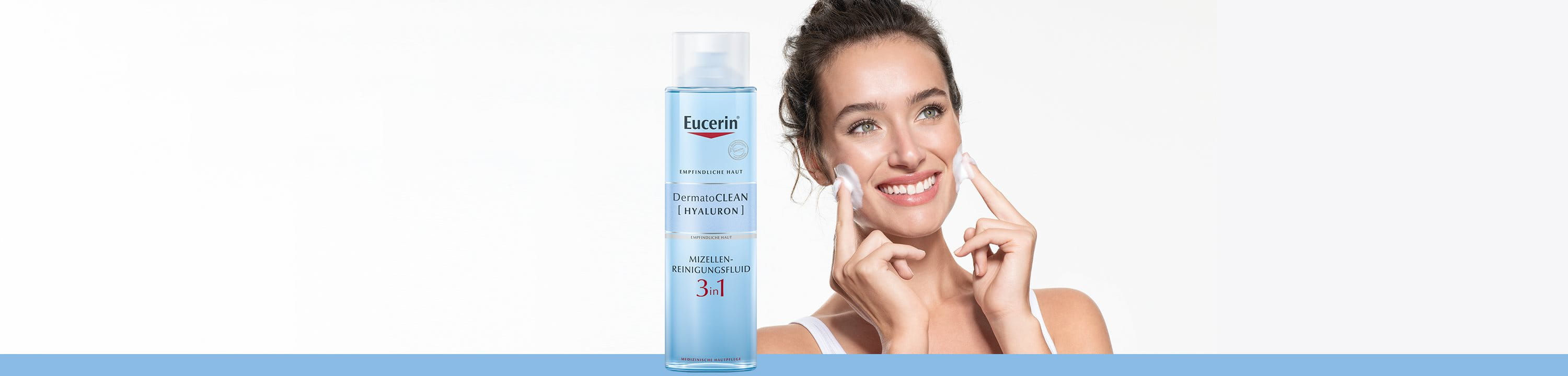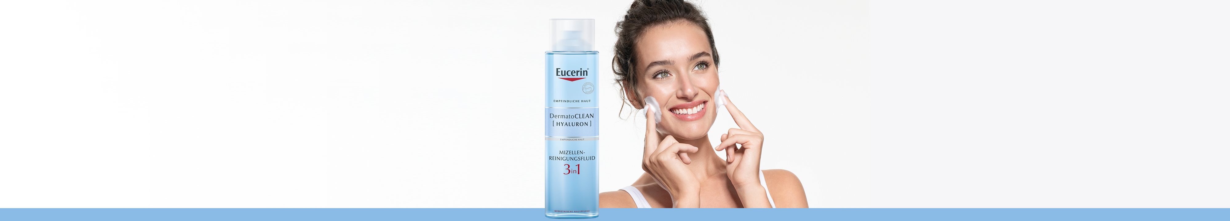 DermatoCLEAN [HYALURON] von Eucerin ist eine Gesichtsreinigungs-Serie, die für alle Hauttypen und Reinigungsanforderungen geeignet ist. Der erste Schritt einer wirkungsvollen Gesichtspflege ist die gründliche Reinigung. Es ist wissenschaftlich erwiesen, dass gut gereinigte und mit Feuchtigkeit versorgte Haut Sauerstoff und Wirkstoffe der anschließenden Pflege besser aufnehmen kann. Die innovative Kombination naturidentischer Inhaltsstoffe entfernt Make-up restlos von der Haut, während durch die enthaltene Hyaluronsäure gleichzeitig der natürliche Feuchtigkeitsausgleich gefördert wird. Mit Eucerin DermatoCLEAN [HYALURON] gereinigte Haut ist sauber, weich, beruhigt, erfrischt und bereit zur Regeneration.