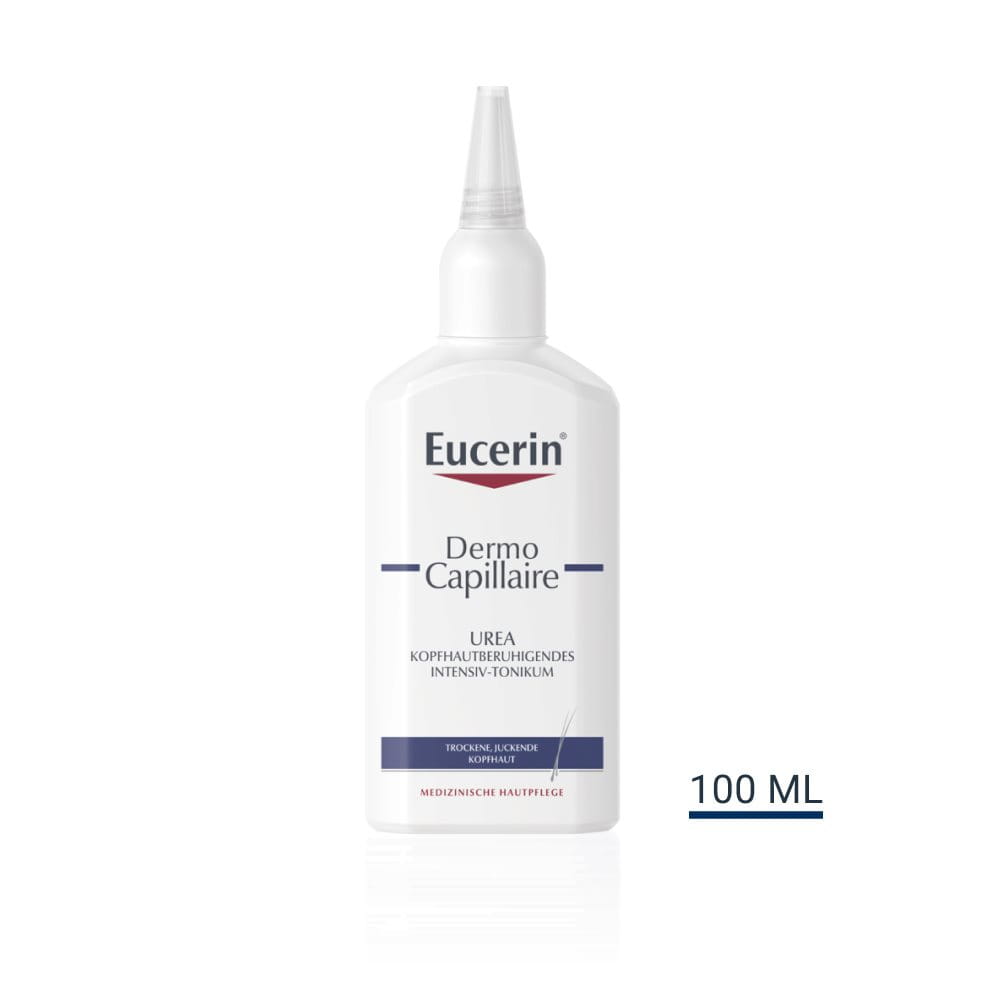 Intensiv-Tonikum gegen juckende, trockene und schuppige Kopfhaut Eucerin DermoCapillaire Urea Kopfhautberuhigendes Intensiv-Tonikum wurde speziell für Menschen mit trockener und juckender Kopfhaut entwickelt. Die milde, duftstofffreie Formel ohne Ausspülen klebt nicht und spendet der Kopfhaut lang anhaltende intensive Feuchtigkeit, um Irritationen zu beruhigen und Juckreiz zu mindern – von der ersten Anwendung an. Es mindert Mikro-Entzündungen, die die Entstehung von Schuppen und Juckreiz verursachen und verbessert dadurch den Zustand der Kopfhaut spürbar. Die Kopfhaut kommt zurück in ihre natürliche Balance.
