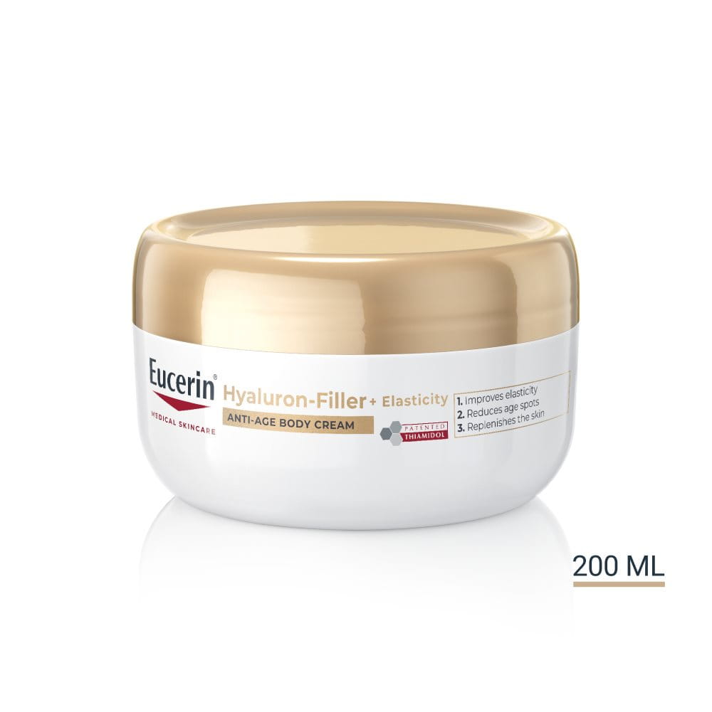 Die Eucerin HYALURON FILLER + ELASTICITY Serie wurde speziell für reifere Haut entwickelt und ist ideal für all jene, die tiefe Falten und einen Mangel an Elastizität bekämpfen wollen. Obwohl unsere Haut so individuell ist wie wir selbst und sich je nach Genen und Lebensstil unterscheidet, tritt dies in der Regel bei Menschen über 50 auf. Die Produkte wirken zusammen, um tiefe Falten aufzupolstern und die Elastizität der Haut zu verbessern. Die Haut fühlt sich straffer an und sieht erfrischt und strahlend aus.
