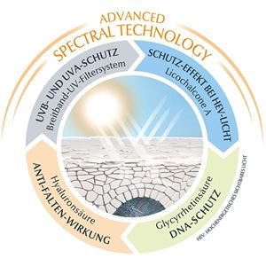 UVA-Strahlung (Ultraviolett-A) der Sonne dringt tief in die Haut ein und fördert die Bildung freier Radikale, die dort oxidativen Stress verursachen. UVA-Strahlen werden oft mit Photoaging (vorzeitige sonnenbedingte Hautalterung) assoziiert. Darüber hinaus können UVA-Strahlen die Polymorphe Lichtdermatose (PLD), die sogenannte Sonnenallergie, auslösen. UVB-Strahlung (Ultraviolett-B) versorgt die Haut mit Energie, um Vitamin D zu produzieren und stimuliert ebenso die Bildung von Melanin, welches die Bräunung der Haut verursacht. Allerdings rufen UVB-Strahlen auch sofort sichtbare Hautschäden hervor, die im Allgemeinen als Sonnenbrand bezeichnet werden. Sie dringen zwar weniger tief in die Haut ein als UVA-Strahlen, sind jedoch der Hauptfaktor für Schäden an der DNA der Zellen und Hautkrankheiten, wie aktinische Keratosis und Hautkrebs. Beide Arten von UV-Strahlen können Hyperpigmentierungen (Melasma und Altersflecken) erzeugen.