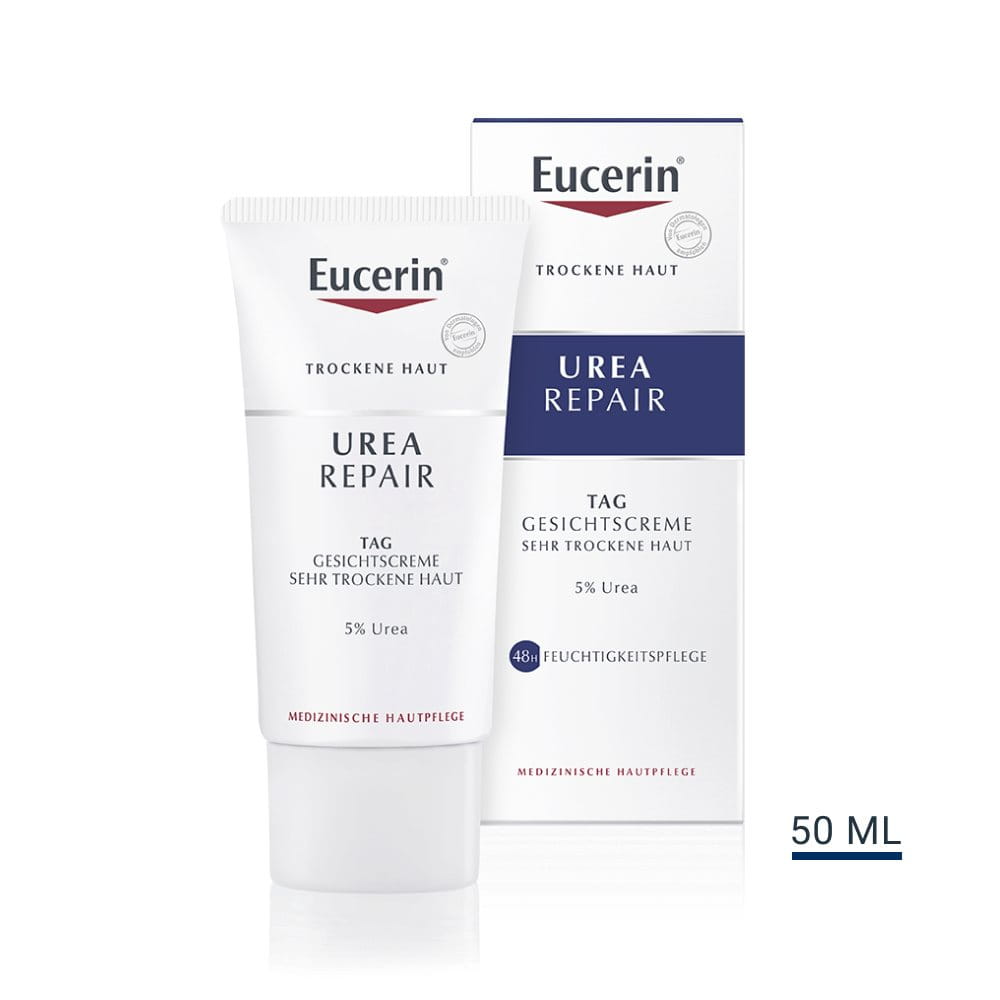 Die Gesichtshaut ist wesentlich öfter als der übrige Körper den häufigsten Ursachen trockener Haut ausgesetzt: Sonnenschein, Wind und Reinigungsmitteln. Deshalb muss sie regelmäßig mit Feuchtigkeit versorgt werden, um den Symptomen trockener Haut (Juckreiz, Rötungen, Schuppigkeit und Irritationen) vorzubeugen. Eucerin UREA REPAIR Gesichtscreme 5% enthält feuchtigkeitsbindende Wirkstoffe, um für lang anhaltende Feuchtigkeit zu sorgen. Lesen Sie mehr über trockene Gesichtshaut.