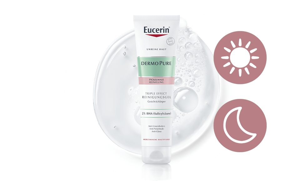 Unreine Haut braucht besonders viel Liebe und Aufmerksamkeit. Wichtig dabei sind vor allem eine regelmäßige Pflegeroutine und effektive Gesichtspflegeprodukte. Die Produkte der Pflegeserie Eucerin DERMOPURE sind speziell für unreine, zu Akne neigende Haut entwickelt worden und wirken bei regelmäßiger Anwendung gegen die wichtigsten Faktoren unreiner Haut: Sebumüberproduktion, Mitesser, Bakterien und Entzündungen. Wir zeigen dir, wie du mit den richtigen Produkten deine ideale Pflegeroutine gegen Pickelmale und unreine Haut kreierst.