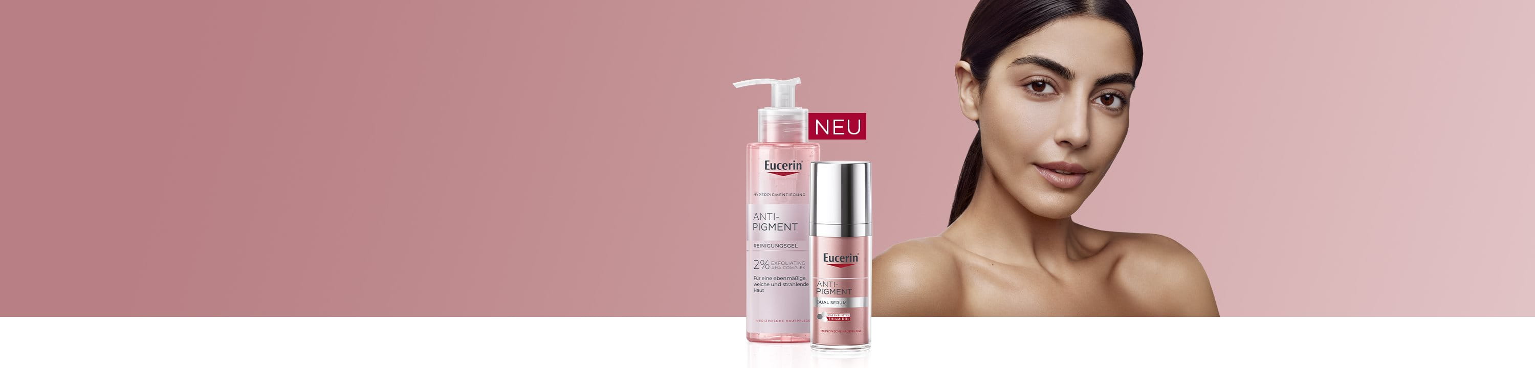 Die Anti-Pigment Serie von Eucerin besteht aus einer Anti-Pigment Tagescreme, eine getönten Anti-Pigment Tagescreme, einer Anti-Pigment Nachtcreme, einem Anti-Pigment DualSerum, einem Anti-Pigment Korrekturstift, einem Anti-Pigment Reinigungsgel, einem Anti-Pigment Tein perfektionierendem Serum und einer Anti-Pigment Korrigierenden Augenpflege. Alle Produkte enthalten den Wirkstoff Thiamidol. Dieser sorgt dafür, dass Pigmentflecken nach und nach verblassen und verhindert, dass neue entstehen. Klinische und dermatologische Studien bestätigen die hohe Wirksamkeit und gute Verträglichkeit. Erste Ergebnisse sind bereits nach zwei Wochen erkennbar. Bei fortlaufender Anwendung wird der Hautton kontinuierlich weiter verbessert.**